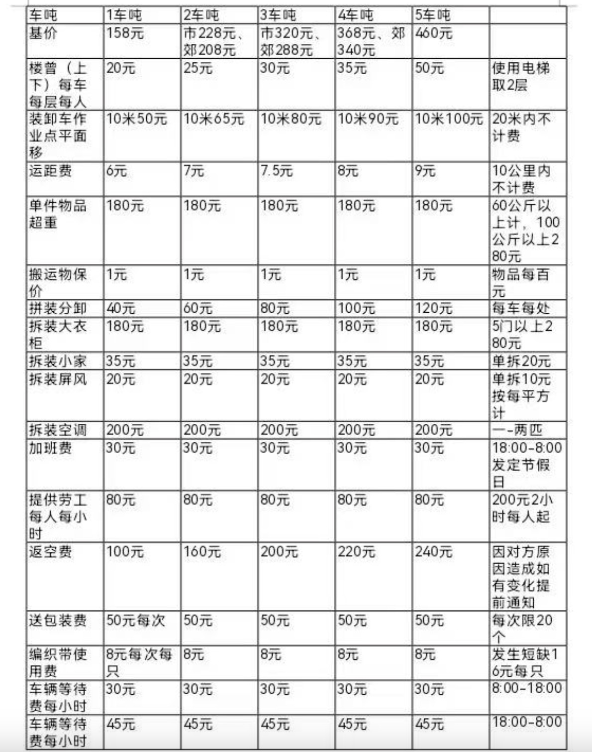 7、附加服务:拆箱、理货、包装材料费用另行商议